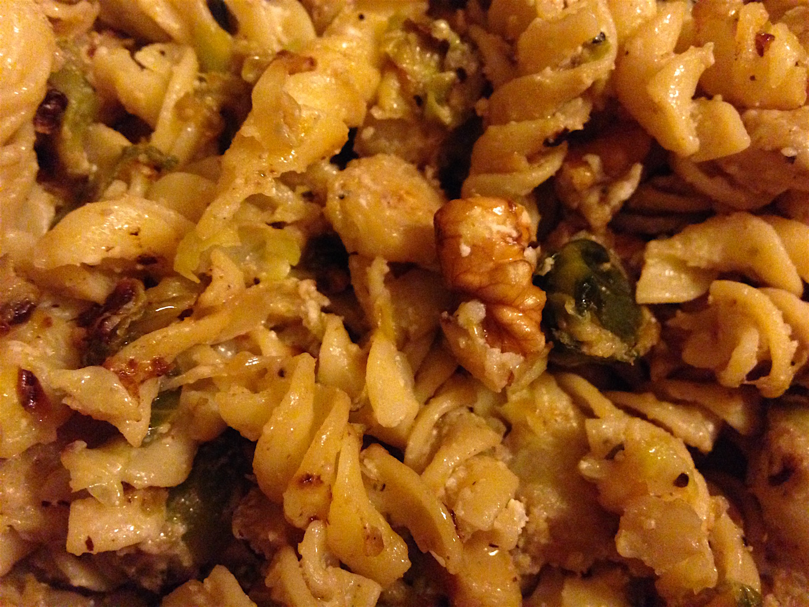 This pasta is an all-in-one meal that hits a nice balance between light and hearty, healthy and indulgent. It’s pleasantly bland although I swear, something about the browned brussels sprouts tastes at least like the memory of bacon.